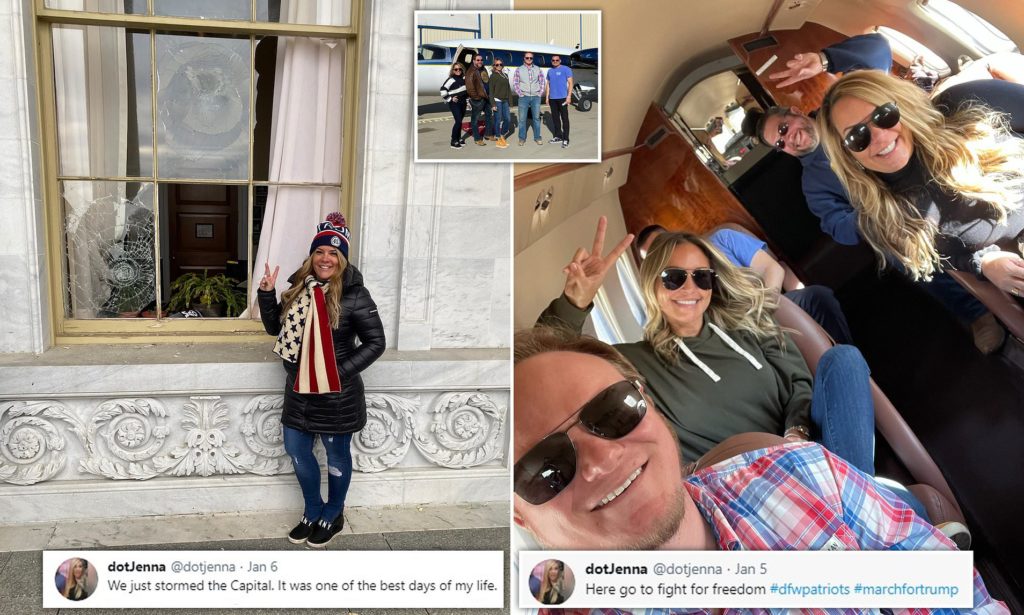 A Trump supporter who took part in the siege of the US Capitol has been identified as a Texas real estate broker who had traveled to the protest in a private jet and later posed next to smashed windows of the federal building.